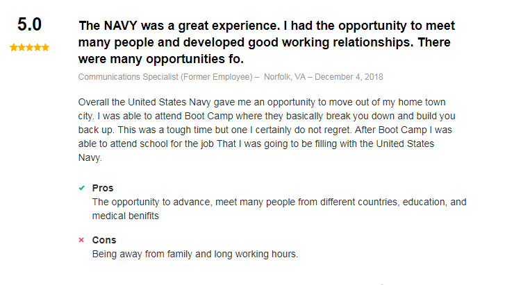 Esto es lo que un ex y dos actuales Especialistas en Comunicación Masiva de la Marina dijeron sobre su experiencia laboral en la Marina en el sitio web Indeed.com :