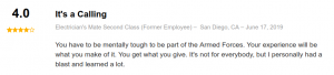 Las reseñas de Electricians Mates actuales y anteriores en Indeed.com son abrumadoramente positivas: