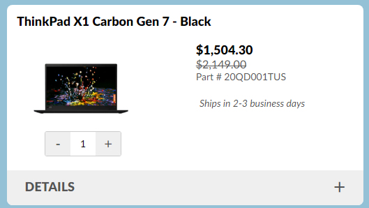 Paso 1: Agregue los artículos que desea comprar a su carrito. Para fines de demostración, acabo de agregar un ThinkPad X1 Carbon Gen 7 a mi carrito.
