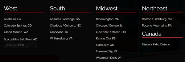 Great Wolf Lodge tiene actualmente 18 ubicaciones abiertas entre los Estados Unidos y Canadá.