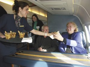Son los auxiliares de vuelo de la Fuerza Aérea los que atienden al presidente de los Estados Unidos a bordo del Air Force One, así como al vicepresidente, al secretario de Estado, a los dignatarios extranjeros y a otros importantes funcionarios gubernamentales nacionales y extranjeros.