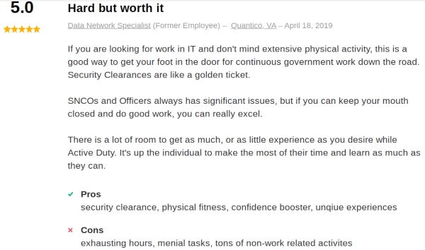 GlassDoor.com tiene muchas reseñas de trabajo positivas sobre MOS 0651: