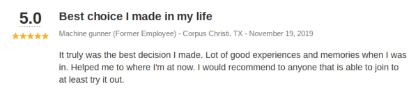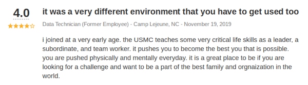 Hay varias revisiones de trabajo relacionadas con el servicio de la Infantería de Marina en sitios de trabajo populares como Indeed.com y GlassDoor.com.