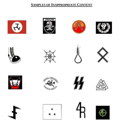 Si sus tatuajes son de alguna manera ofensivos, racistas, sexistas, extremistas o desacreditan a Estados Unidos, desempaque sus maletas.